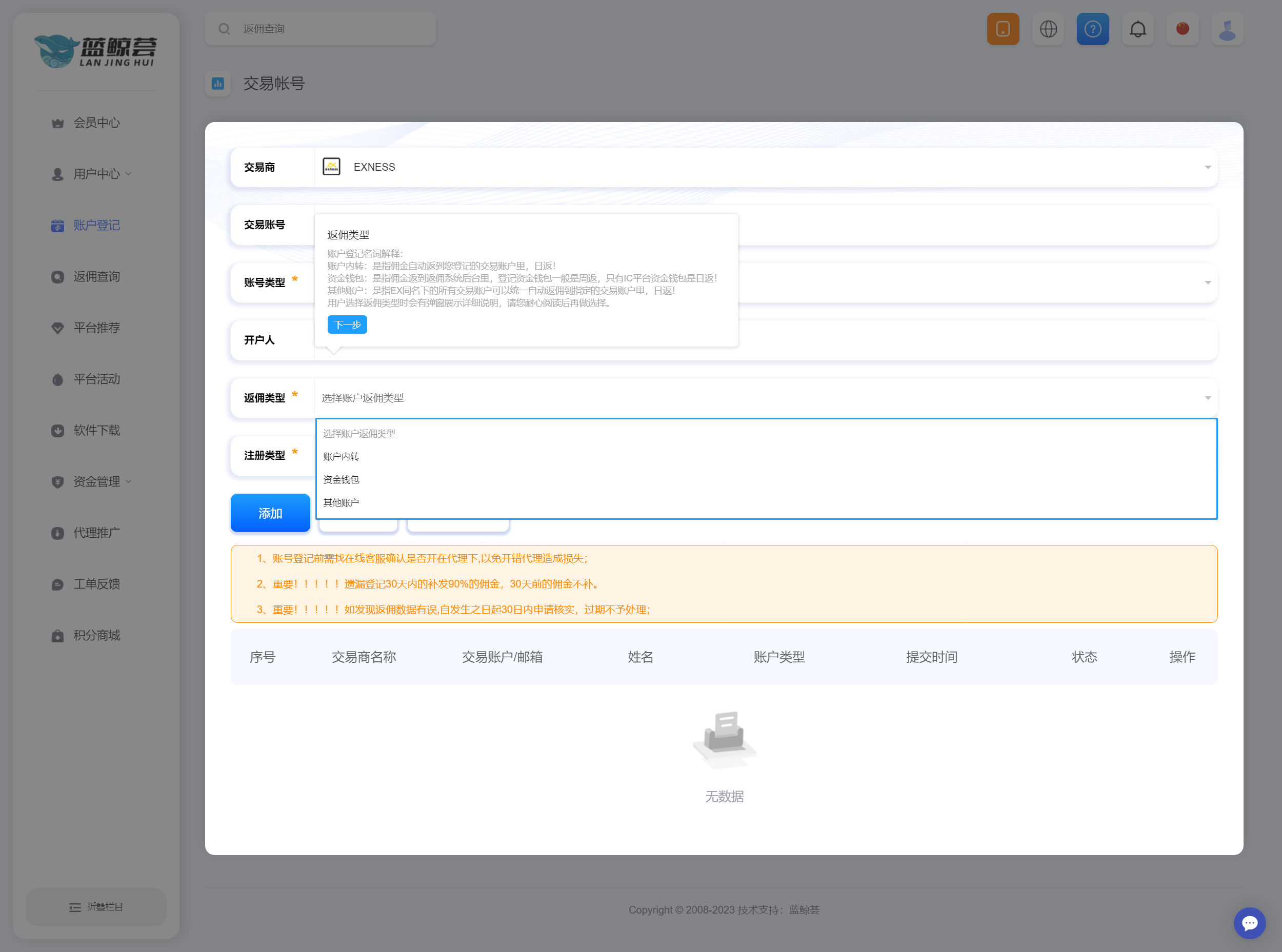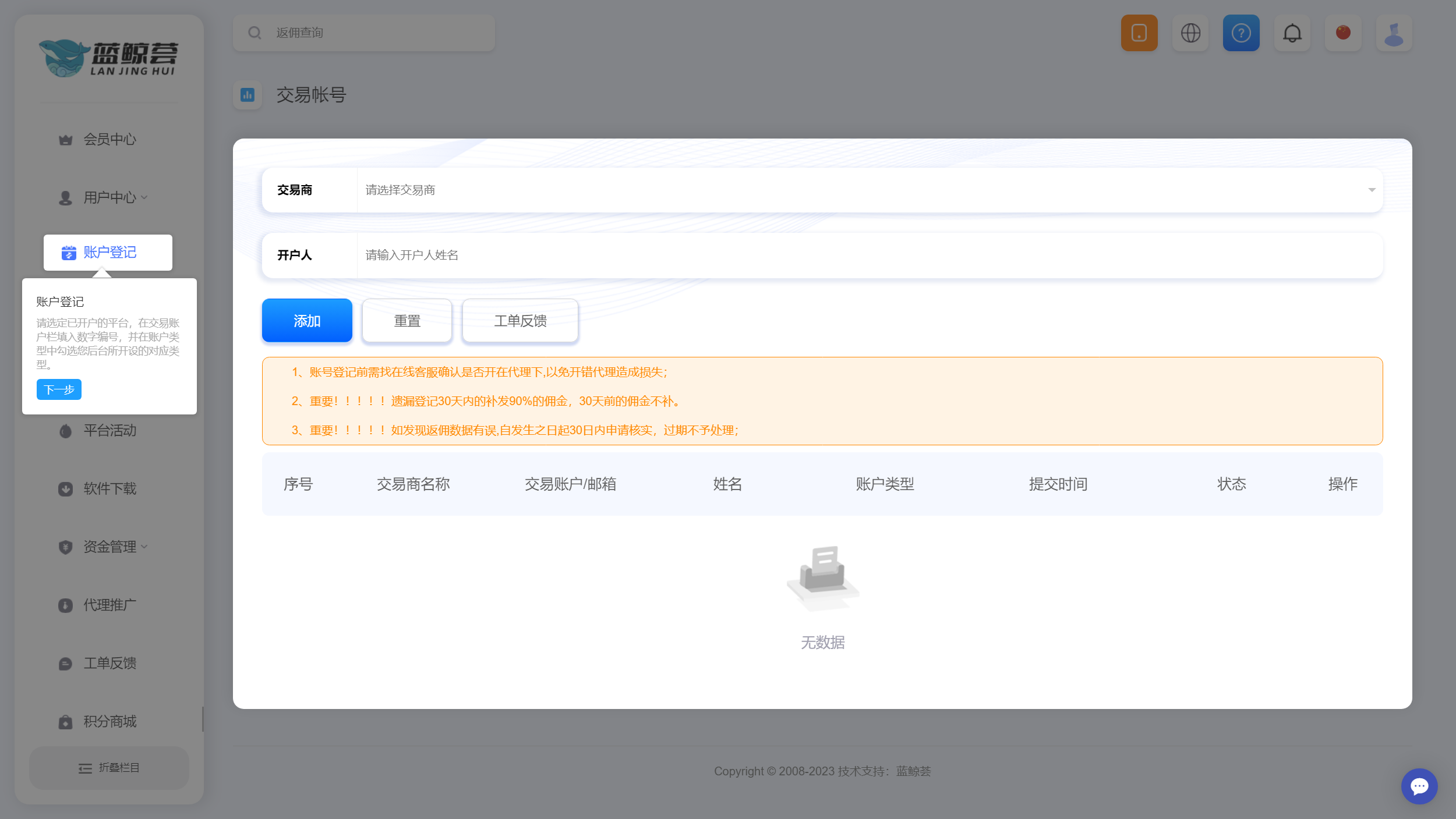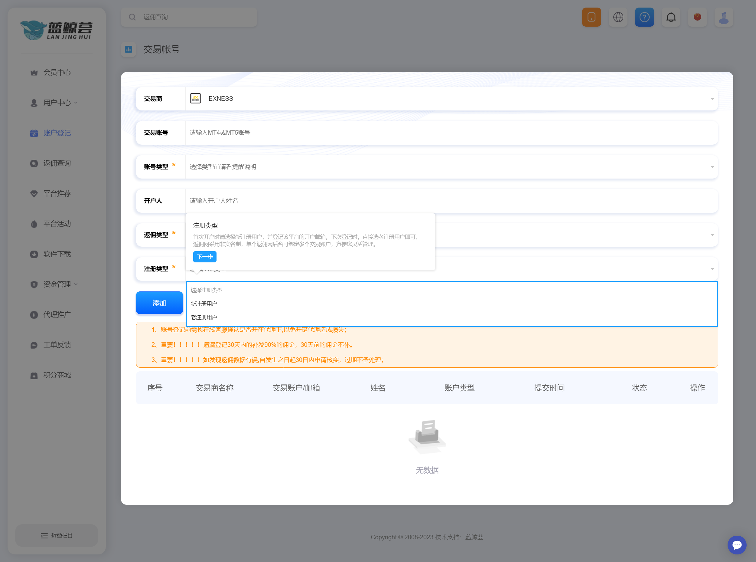 本网只提供外汇开户咨询、降低客户交易成本,不接触客户资金,不参与任何平台经营活动,客户自行选择外汇平台交易,交易存在很高风险,并不适合每一位客户,因此我们不邀约任何人参与该项活动建议您必须充分了解其风险,考虑到自己的风险承受能力谨慎参与,责任自负!